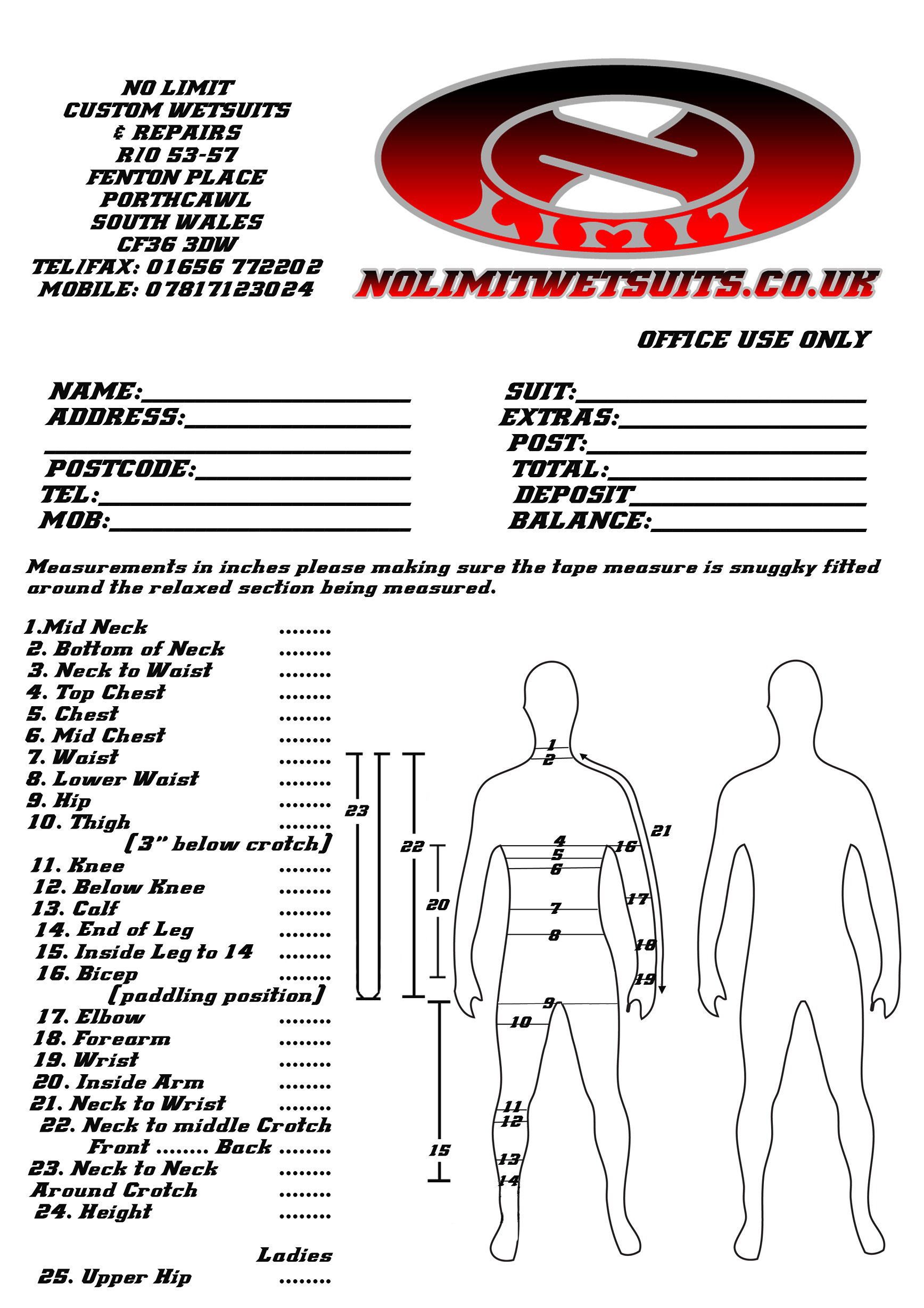 Take all measurements while wearing form-fitting clothing or underwear. Stand naturally with arms slightly away from your body.